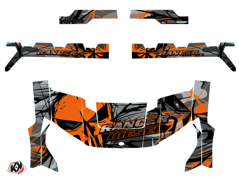 Offer you now for your Polaris Ranger Diesel UTV a graphic kit on the colors and brand name of EVIL Grey Orange.