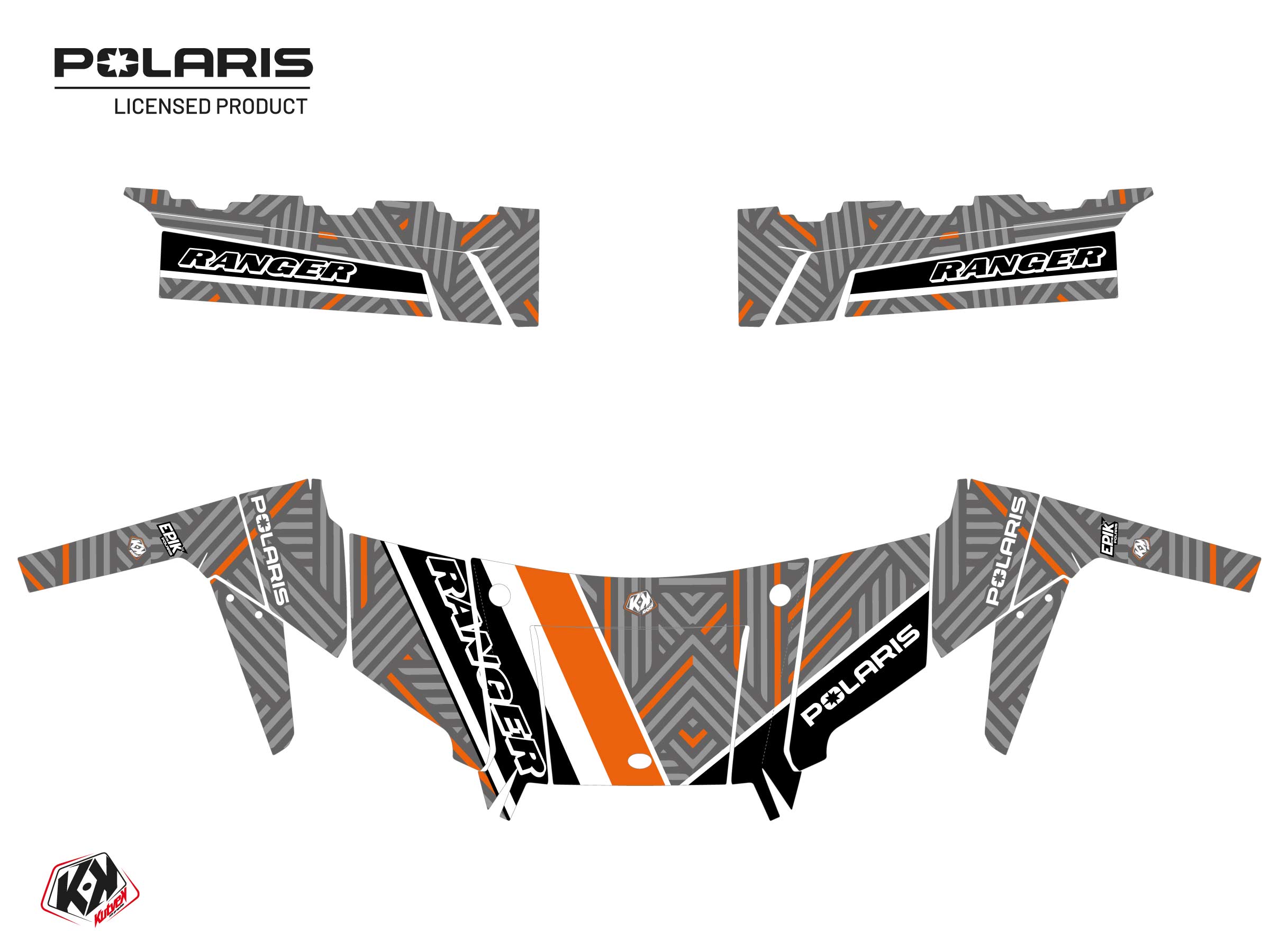 Offer you now for your Polaris Ranger XP 900 UTV a graphic kit on the colors and brand name of Epik Grey.