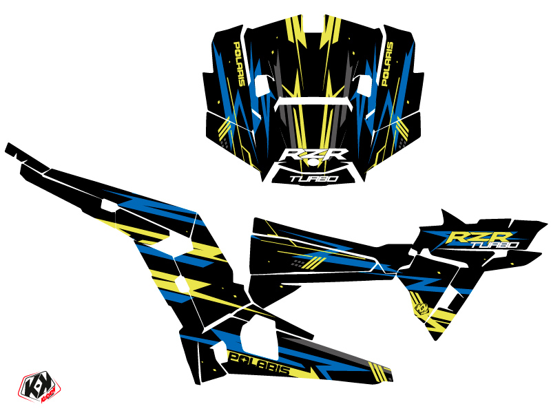 Offer you now for your Polaris RZR 1000 Turbo UTV a graphic kit on the colors and brand name of ABSTRACT Blue Yellow.