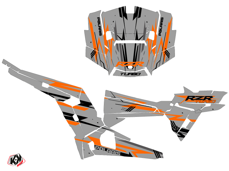Offer you now for your Polaris RZR 1000 Turbo UTV a graphic kit on the colors and brand name of ABSTRACT Orange Grey.