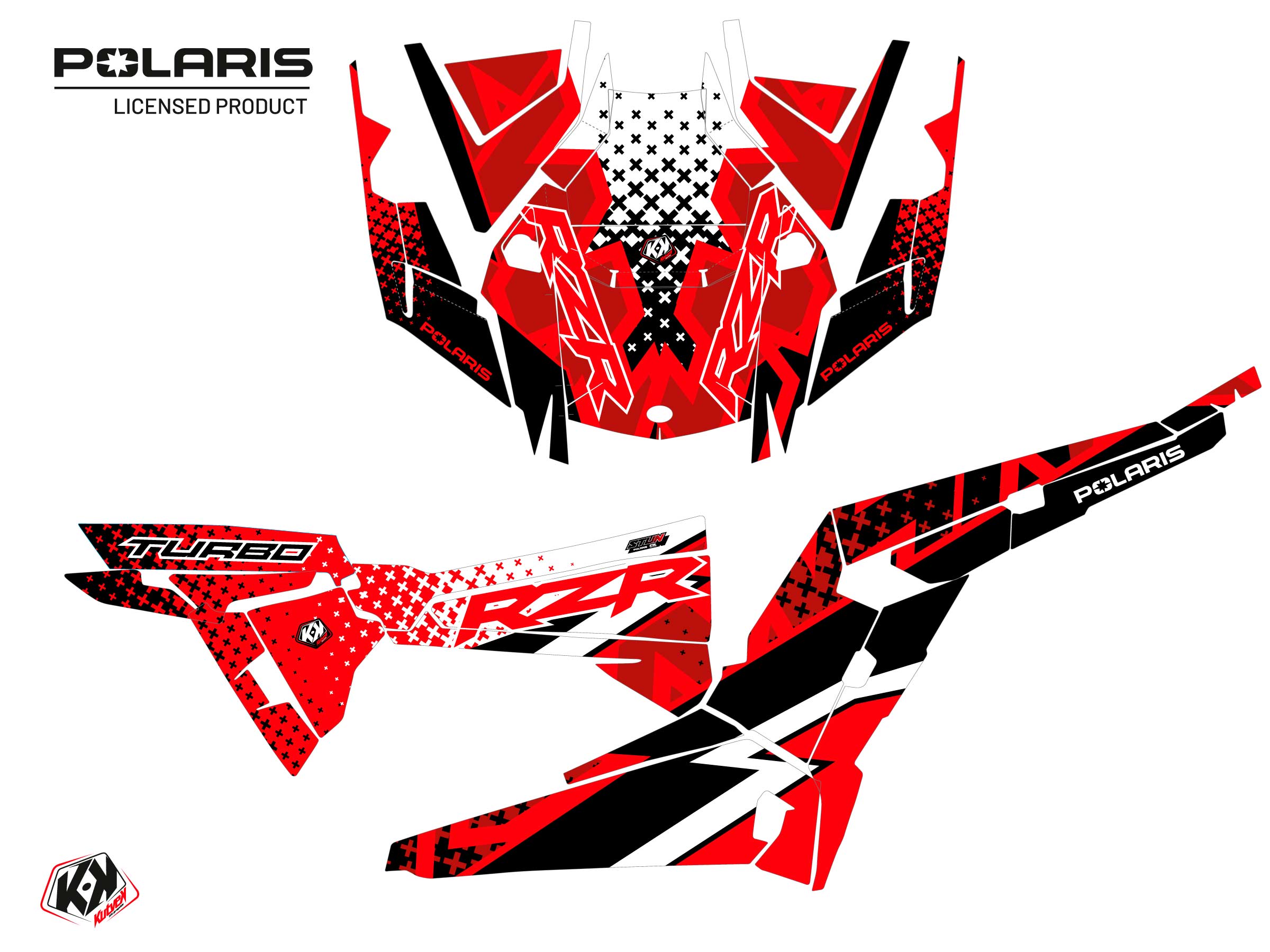 Offer you now for your Polaris RZR XP Turbo UTV a graphic kit on the colors and brand name of Stun Red.