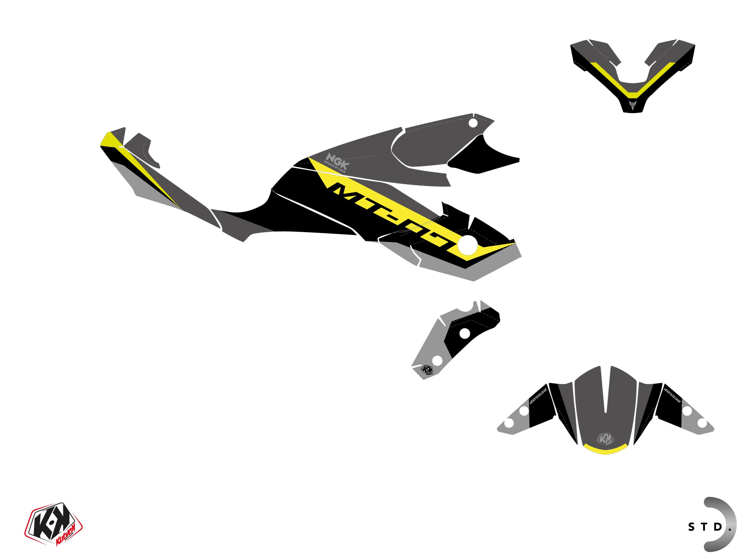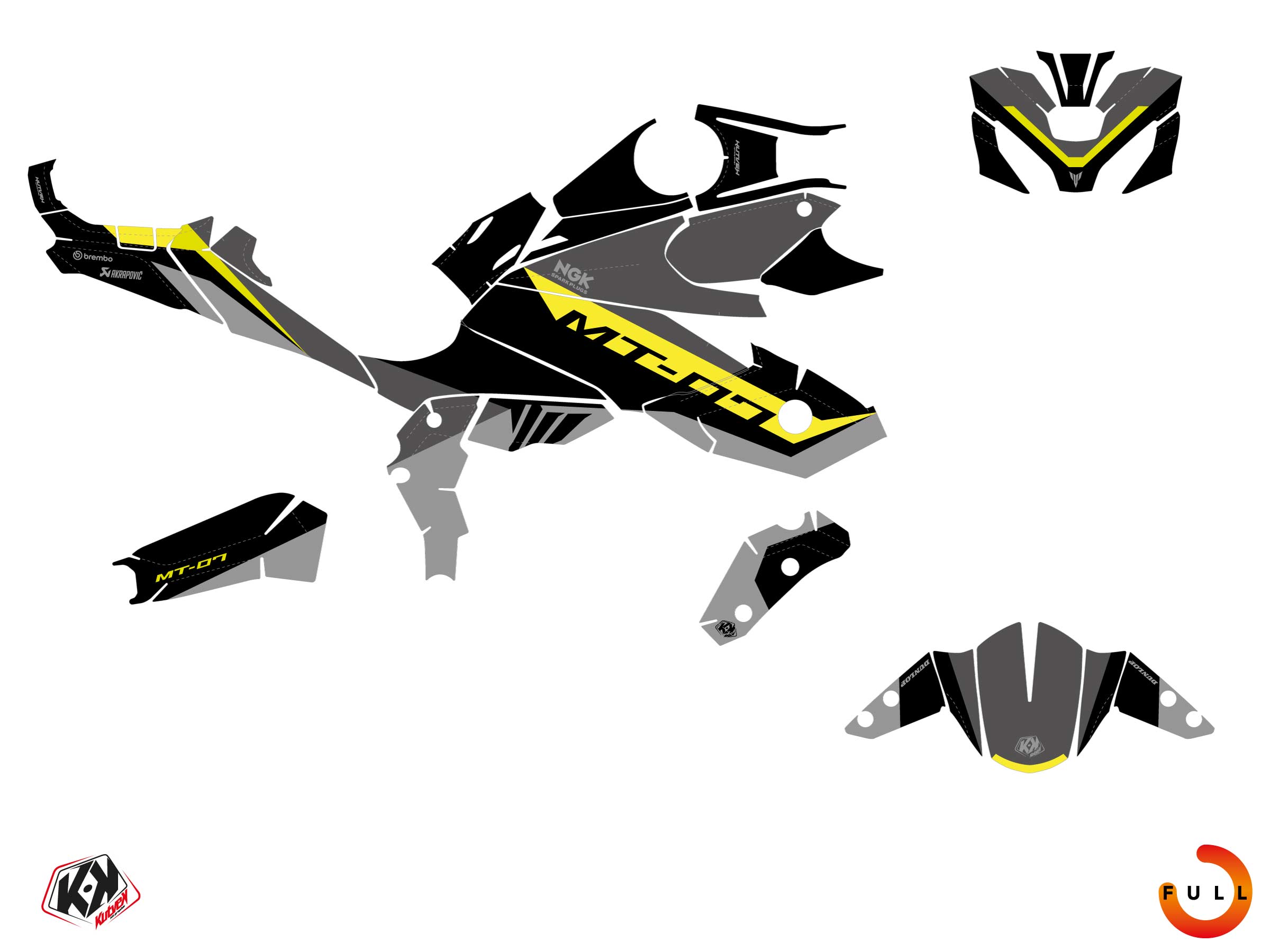 The YAMAHA MT 07 graphic kit includes :