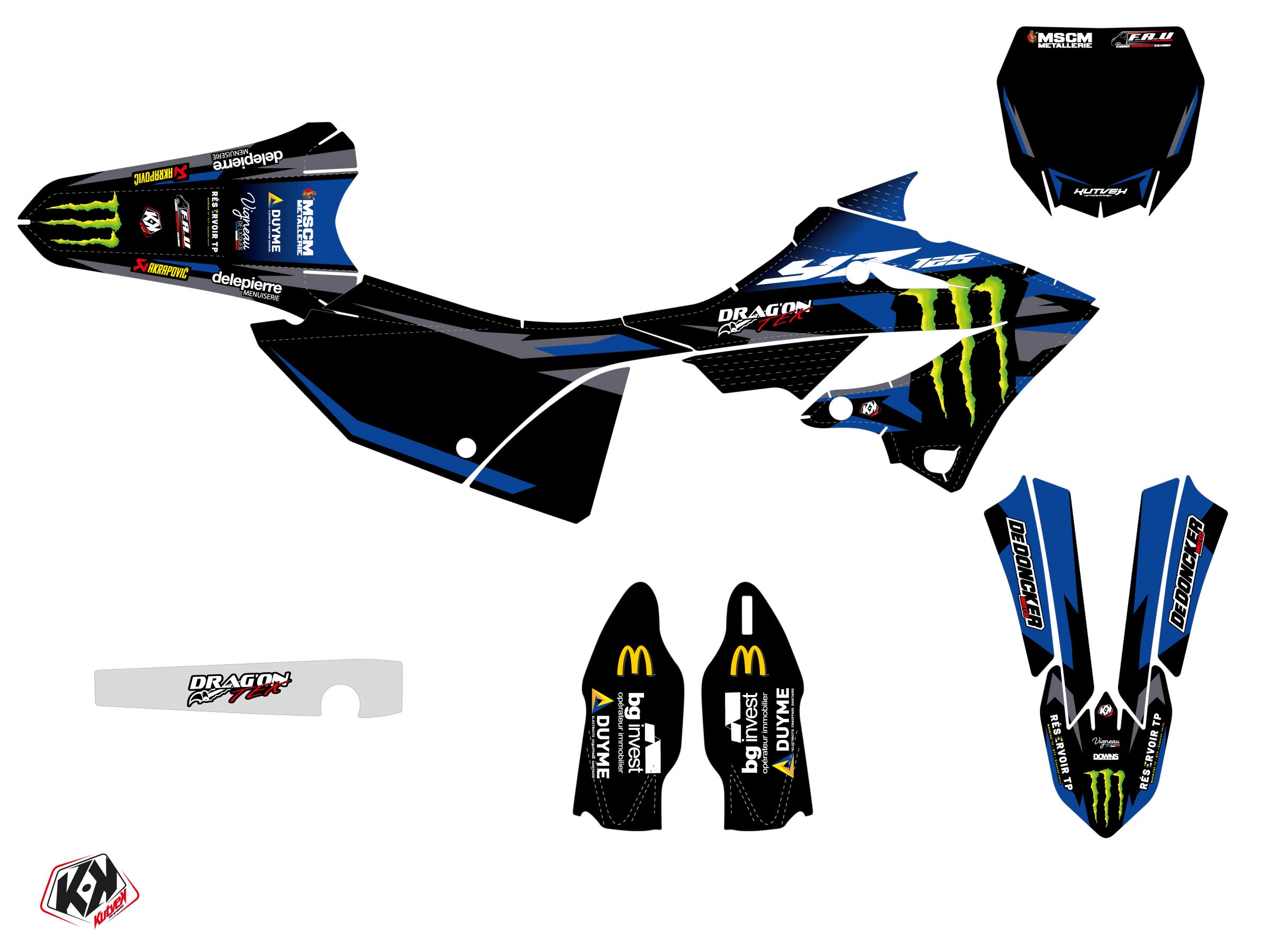 The YAMAHA YZ 125 graphic kit includes :