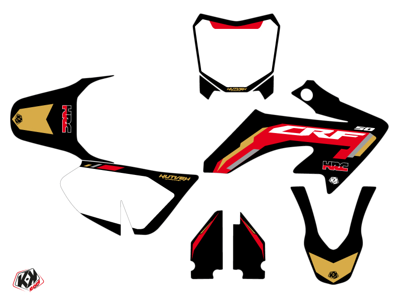 Offrez-vous dès maintenant pour votre Moto Cross Honda 50 CRF un kit déco aux couleurs de la gamme WORKS Noir.