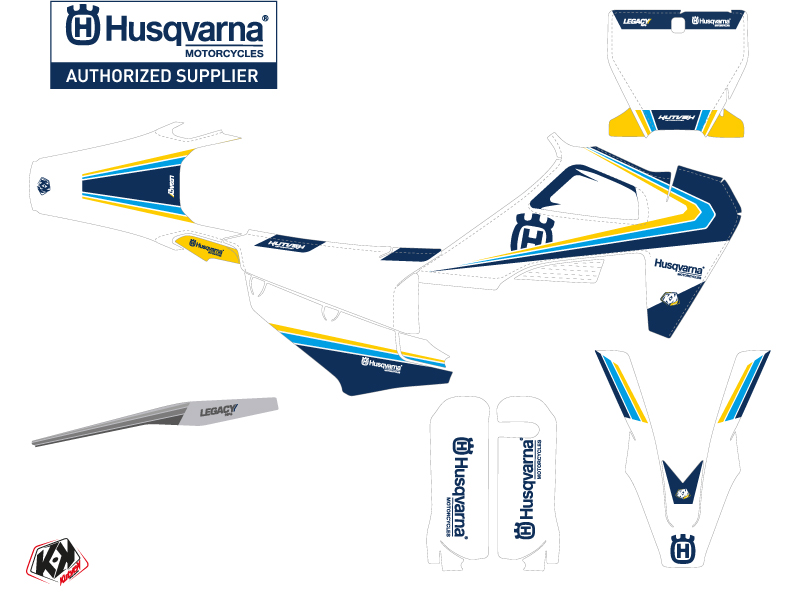 Offrez-vous dès maintenant pour votre Moto Cross Husqvarna FC 350 un kit déco aux couleurs de la gamme LEGACY Bleu Jaune.
