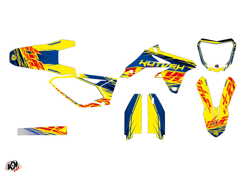 Offrez-vous dès maintenant pour votre Moto Cross Suzuki 450 RMZ un kit déco aux couleurs de la gamme ERASER Bleu Jaune.