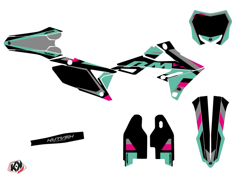 Offrez-vous dès maintenant pour votre Moto Cross Suzuki 450 RMZ un kit déco aux couleurs de la gamme LABEL Turquoise.