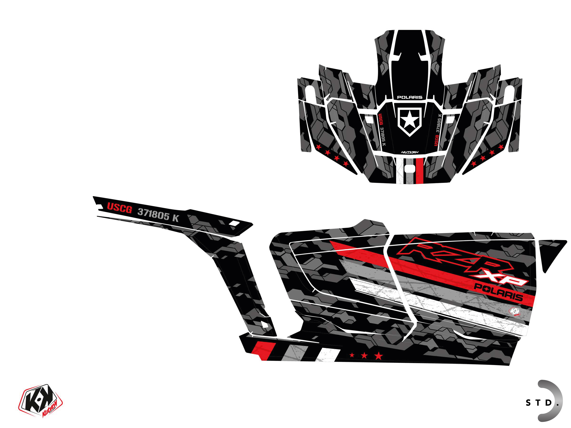 Offrez-vous dès maintenant pour votre SSV POLARIS RZR XP 4 PORTES un kit déco aux couleurs de la gamme FORCE Rouge.
