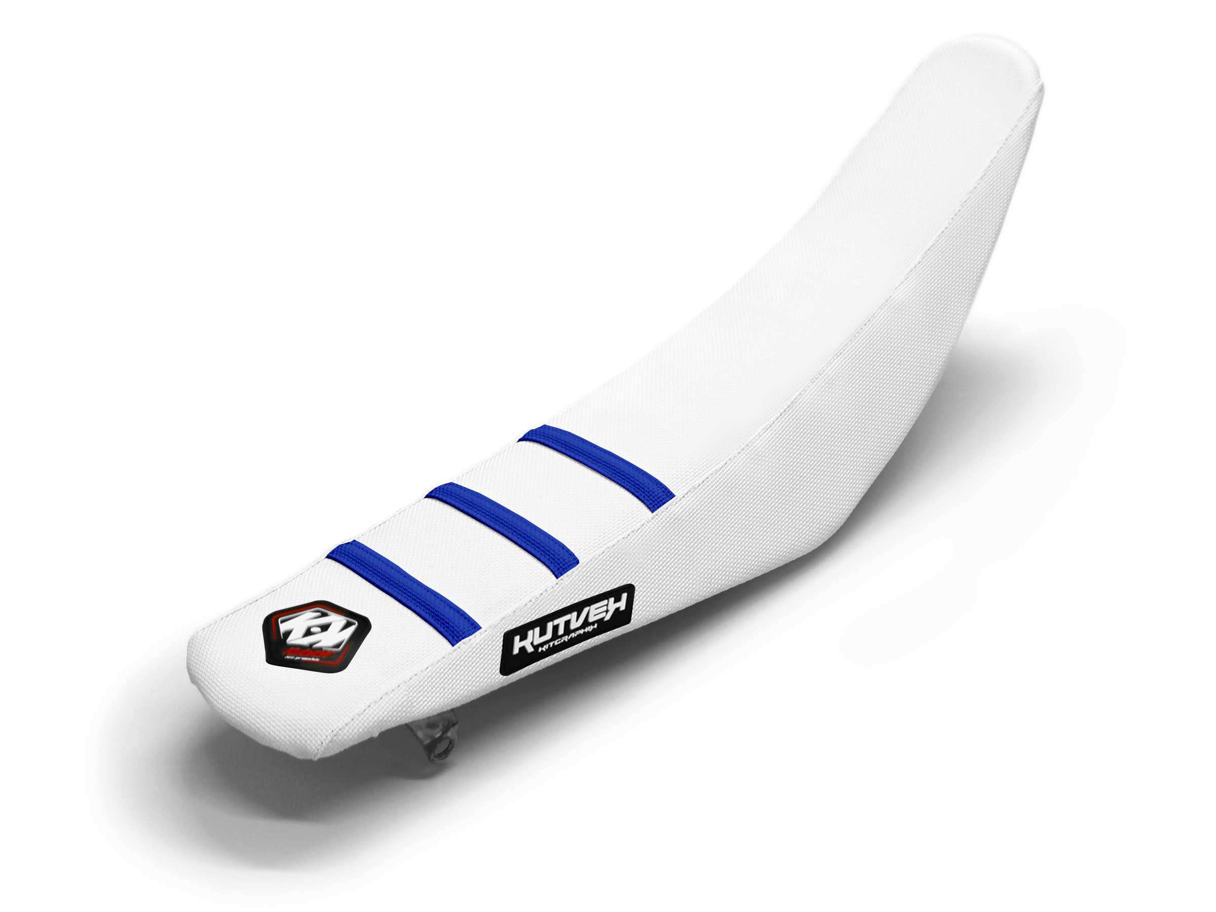 Housse De Selle Motocross Blanc/Bleu 3 Ribs