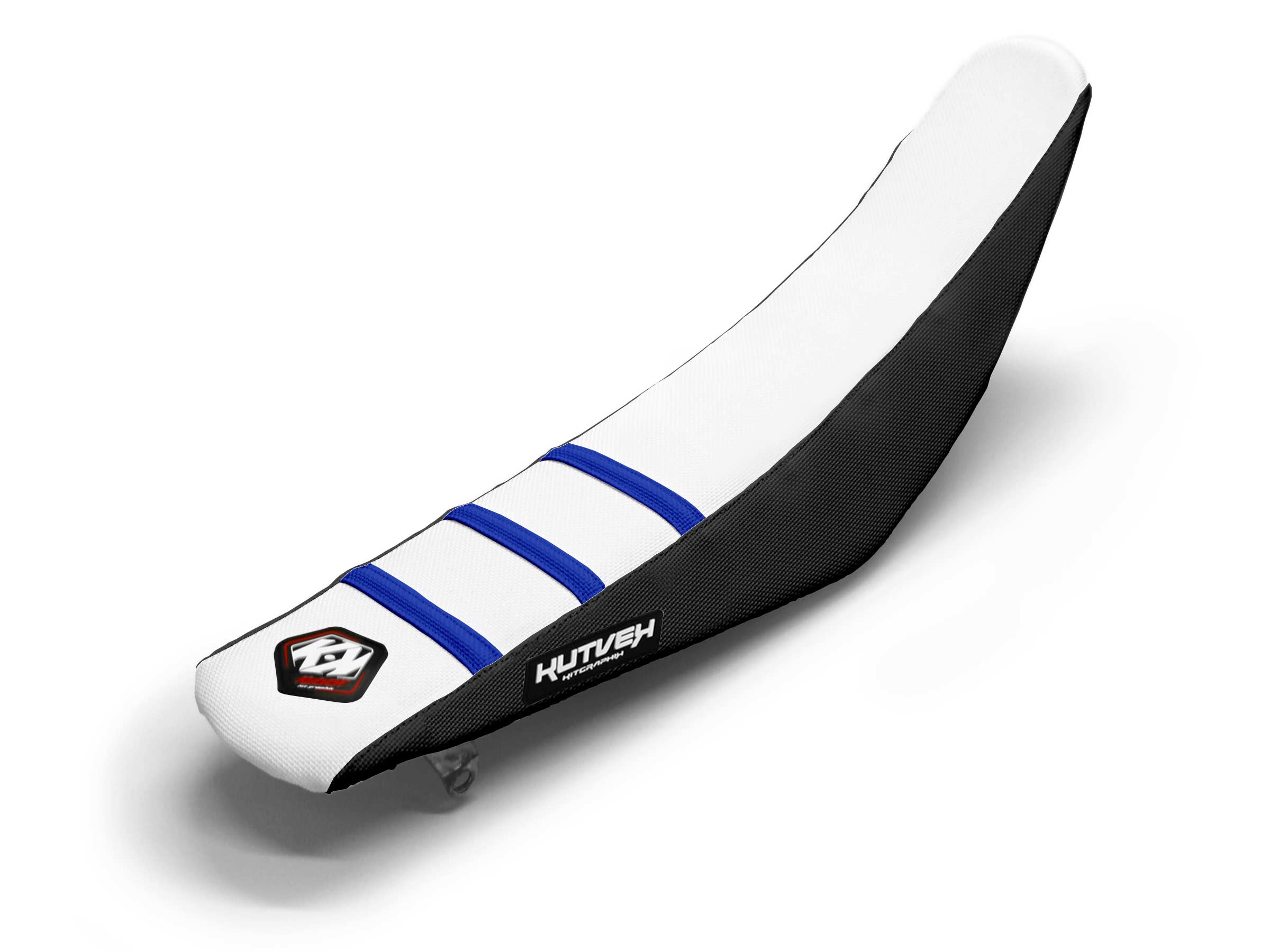 Housse De Selle Motocross Blanc/Noir/Bleu 3 Ribs