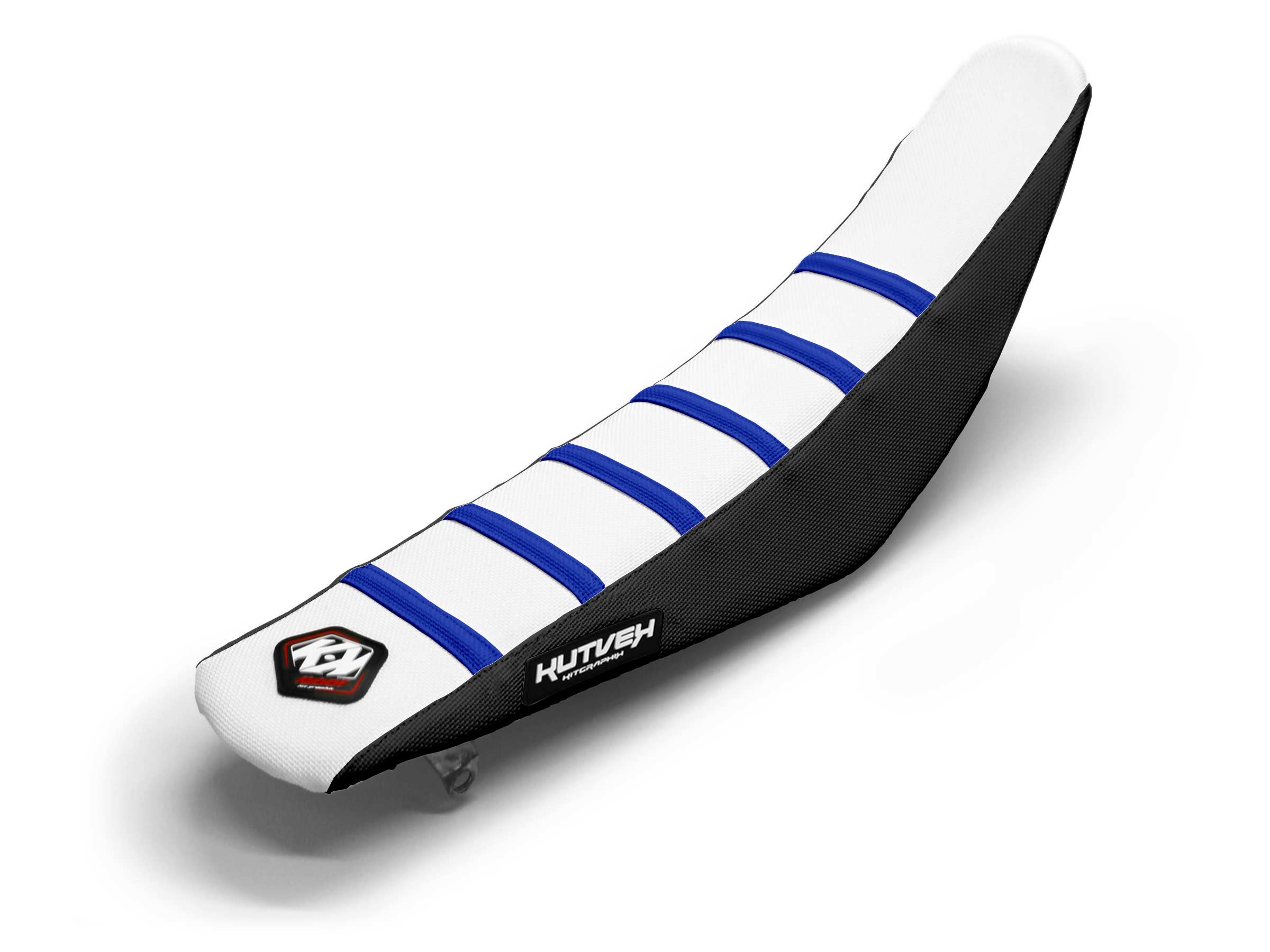 Housse De Selle Motocross Blanc/Noir/Bleu 6 Ribs