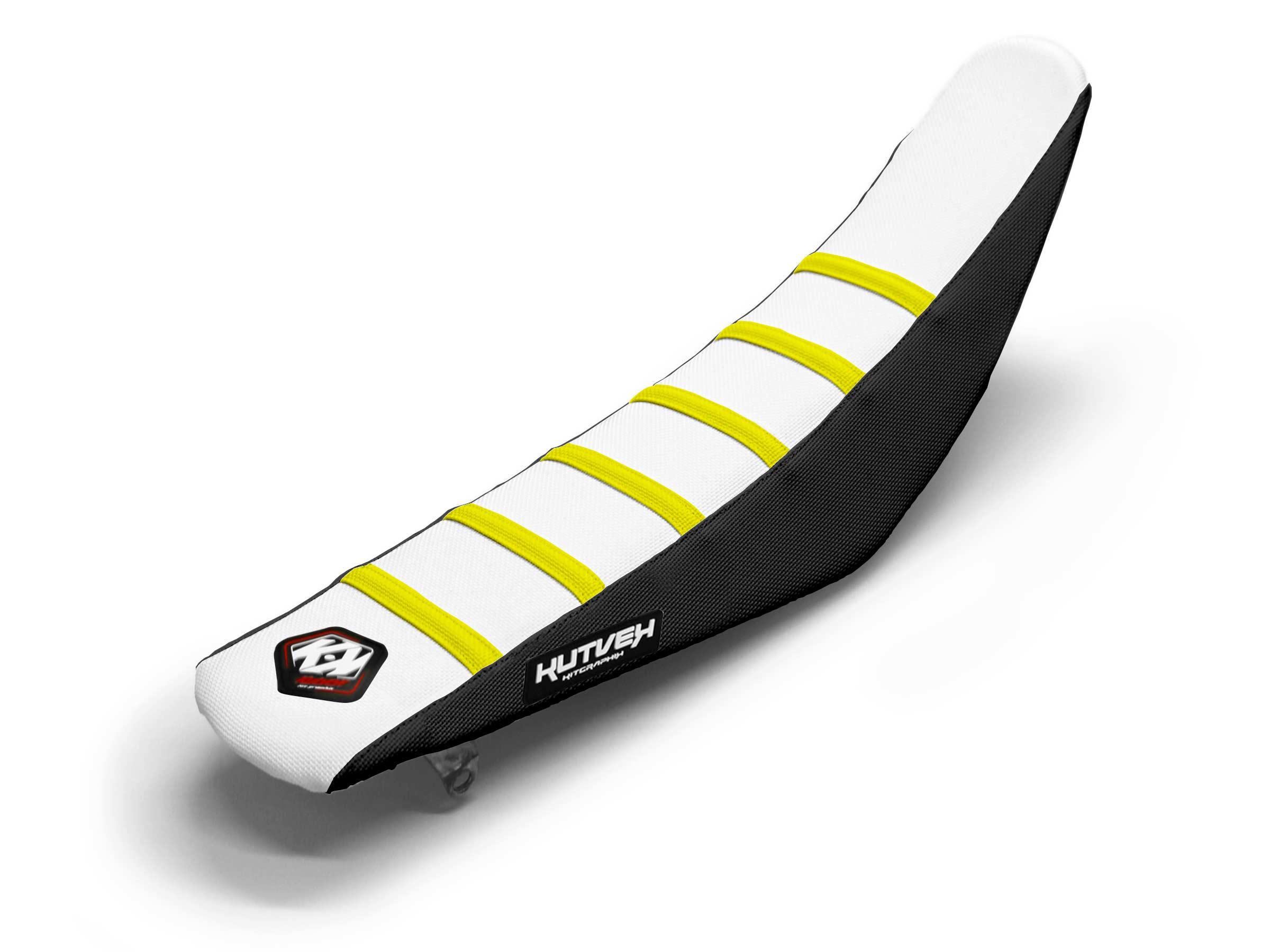Housse De Selle Motocross Blanc/Noir/Jaune 6 Ribs