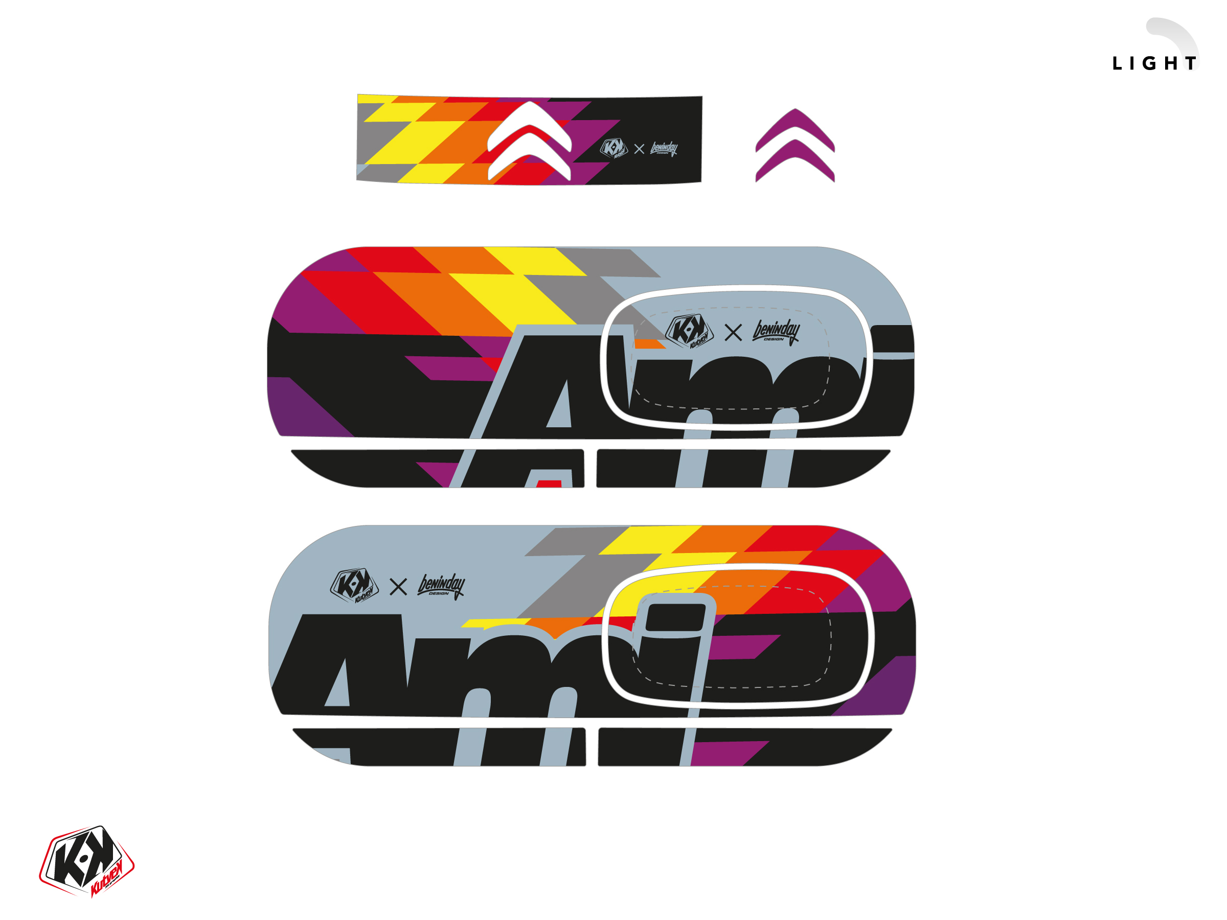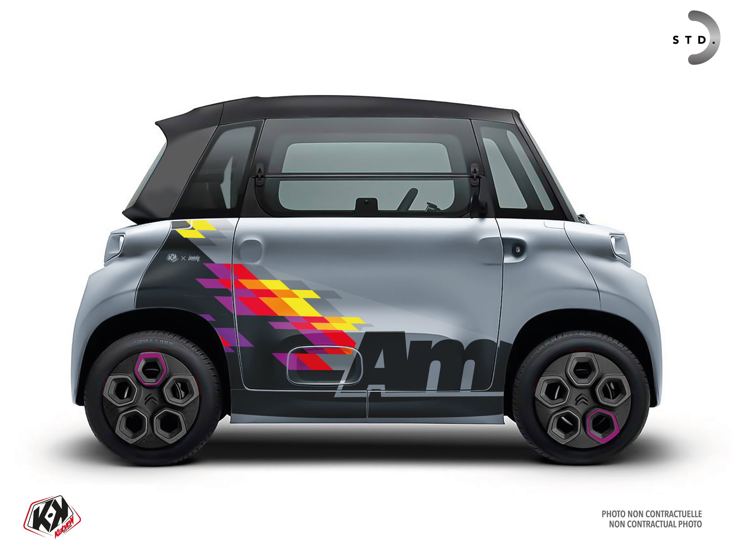 Offrez-vous dès maintenant pour votre GOLF CART CITROËN AMI un kit déco aux couleurs de la gamme GLITCH Bleu.