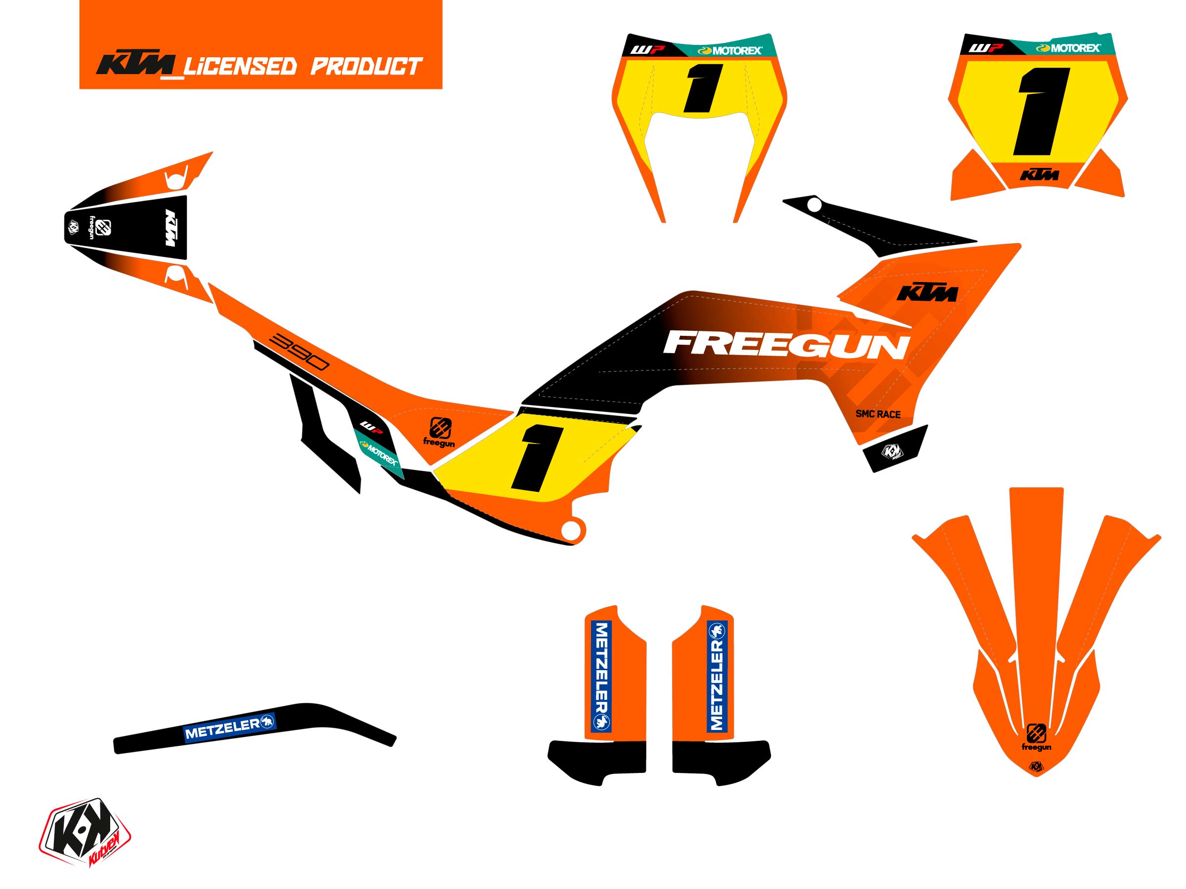 Offrez-vous dès maintenant pour votre Moto KTM SMC 390 R un kit déco aux couleurs de la gamme FREEGUN K26 Orange Holographique.