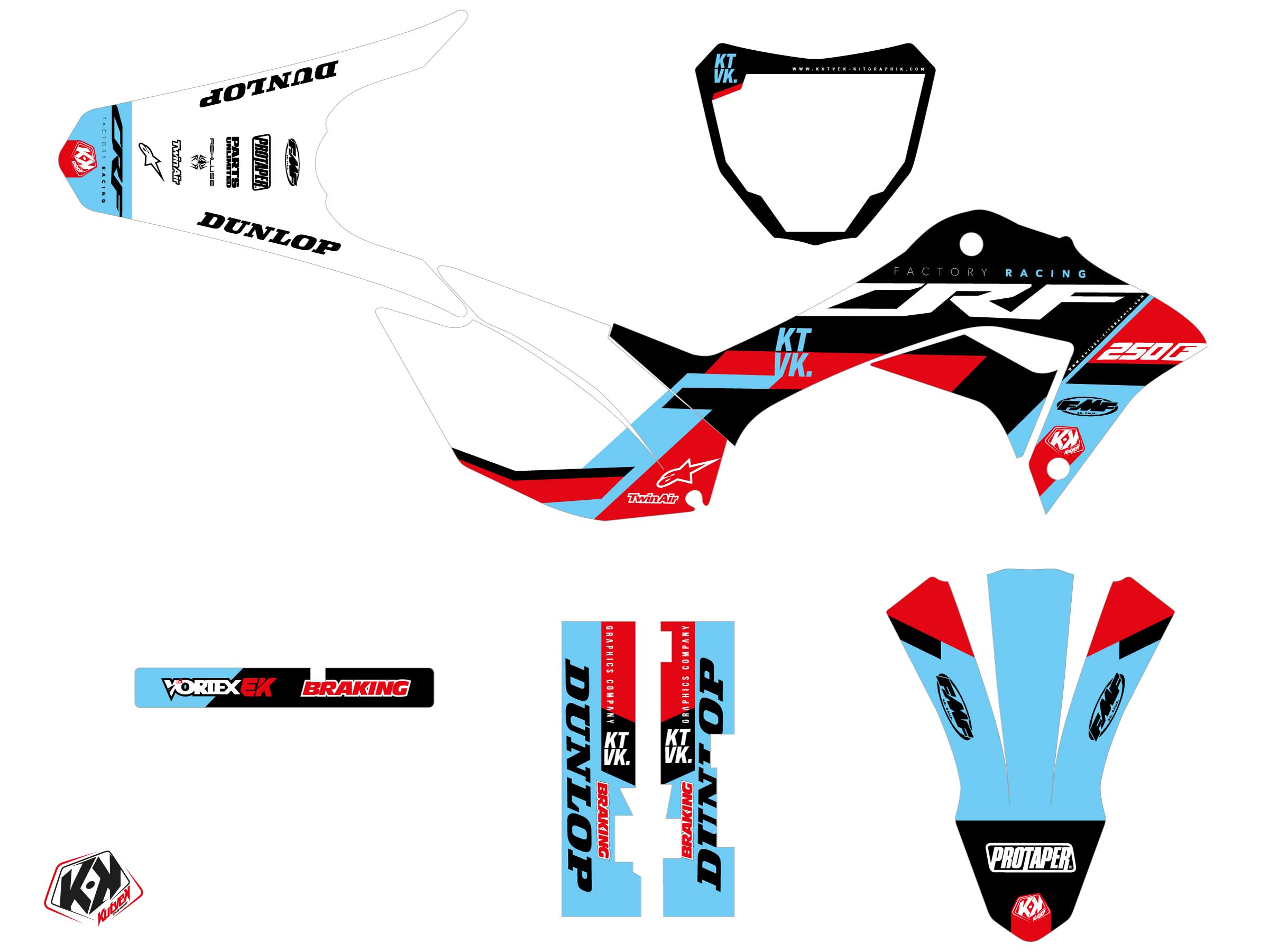 Offrez-vous dès maintenant pour votre Moto Cross Honda 250F CRF un kit déco aux couleurs de la gamme ROOKIE Noir.