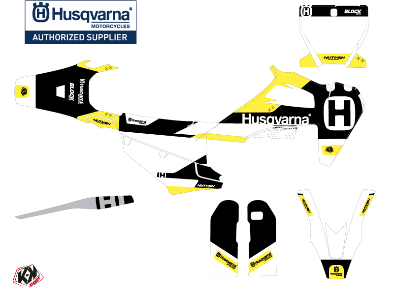 Offrez-vous dès maintenant pour votre Moto Cross Husqvarna 450 FS un kit déco aux couleurs de la gamme BLOCK Noir Jaune.