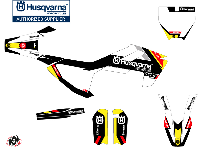 Offrez-vous dès maintenant pour votre Moto Cross Husqvarna TC 65 un kit déco aux couleurs de la gamme ROCKY Noir.