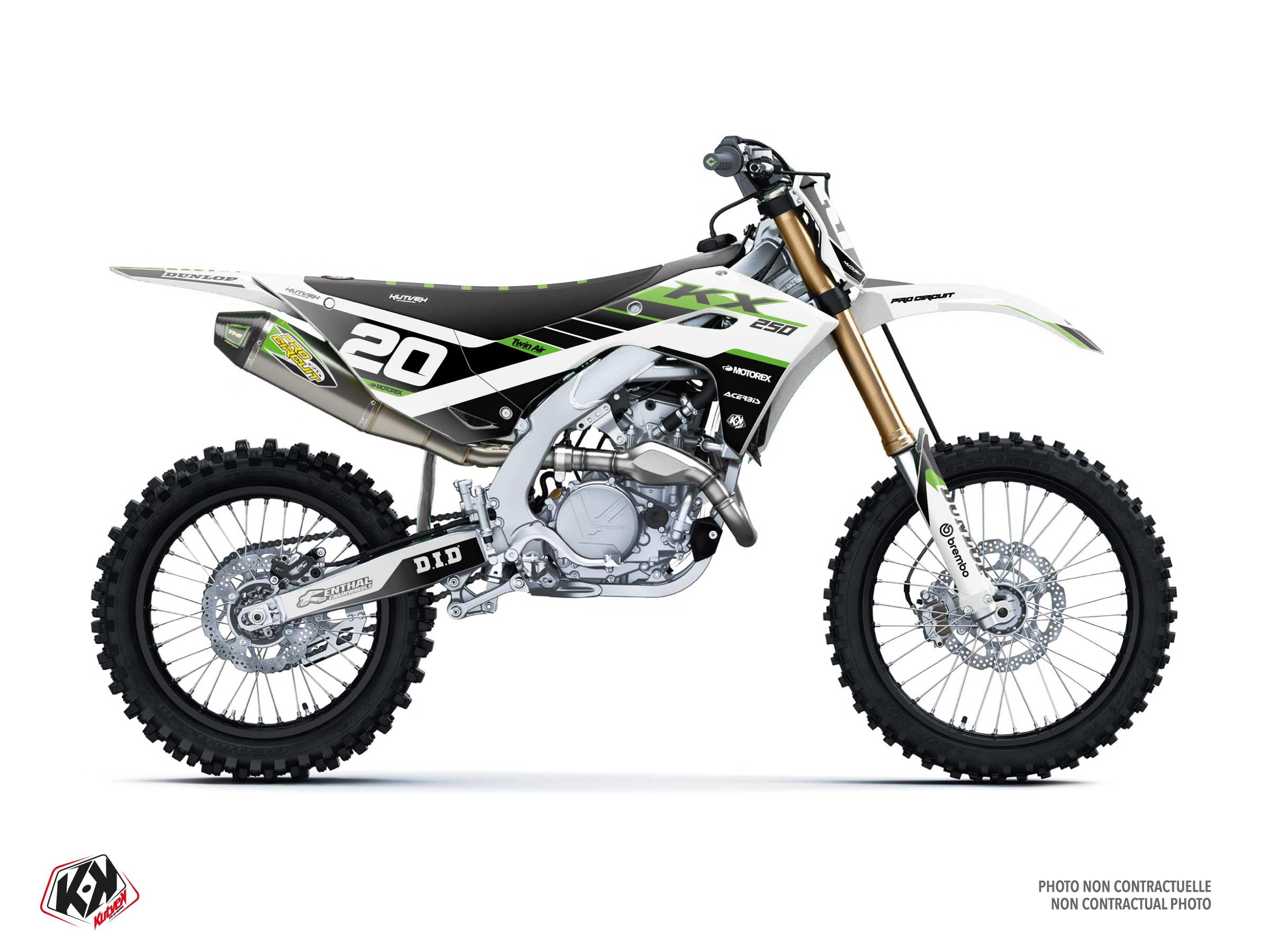 kit déco motocross origin k25 kawasaki blanc série