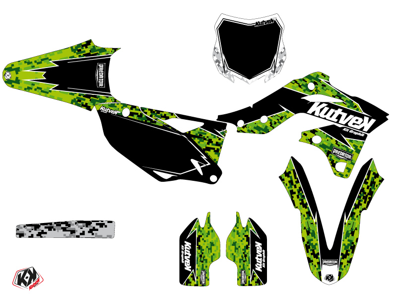 Offrez-vous dès maintenant pour votre Moto Cross Kawasaki 250 KXF un kit déco aux couleurs de la gamme PREDATOR Noir Vert.
