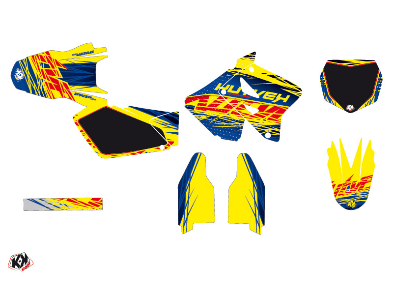 Offrez-vous dès maintenant pour votre Moto Cross Suzuki 125 RM un kit déco aux couleurs de la gamme ERASER Bleu Jaune.