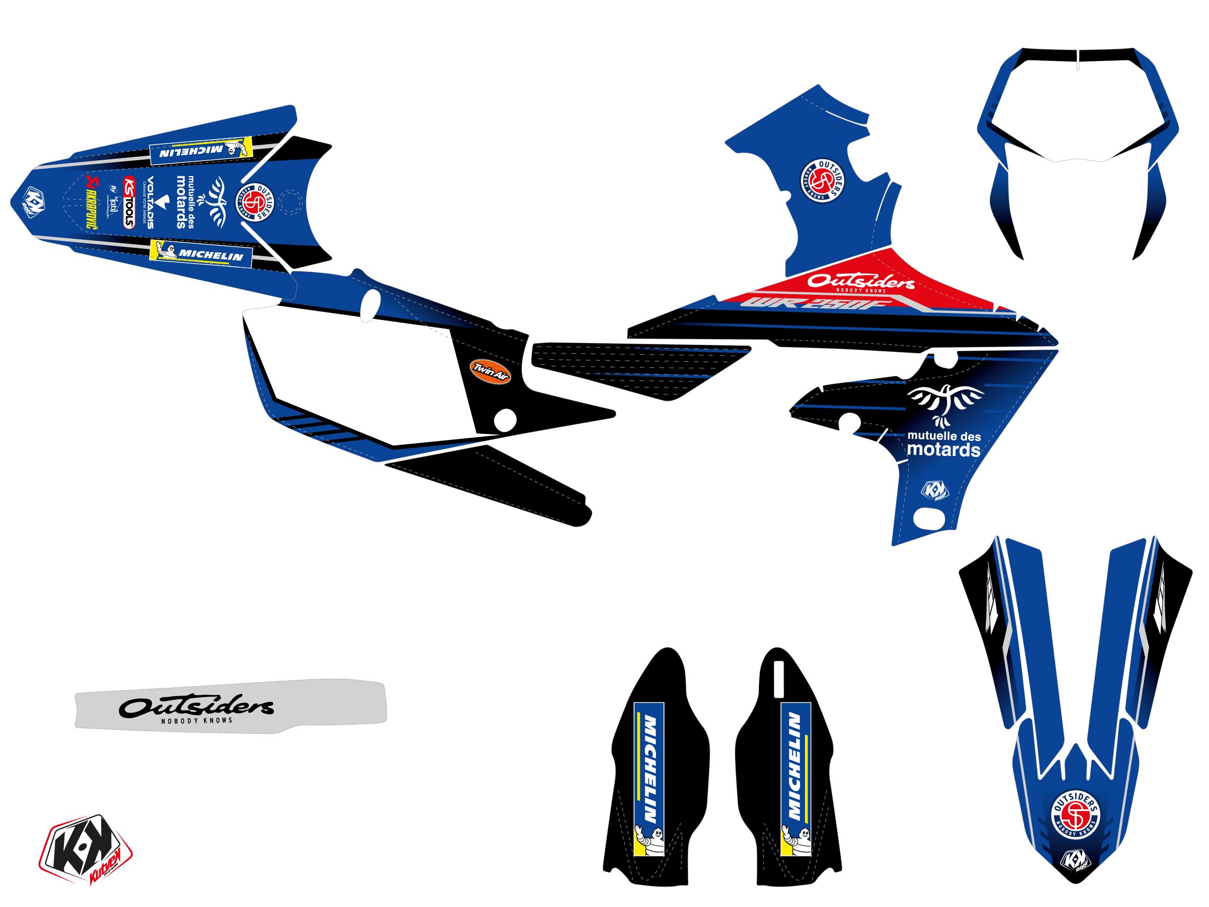 Le kit déco REPLICA TEAM OUTSIDERS K22 vous permettra d’adopter les couleurs du Team Outsiders sur votre Moto Cross Yamaha 250 WRF.