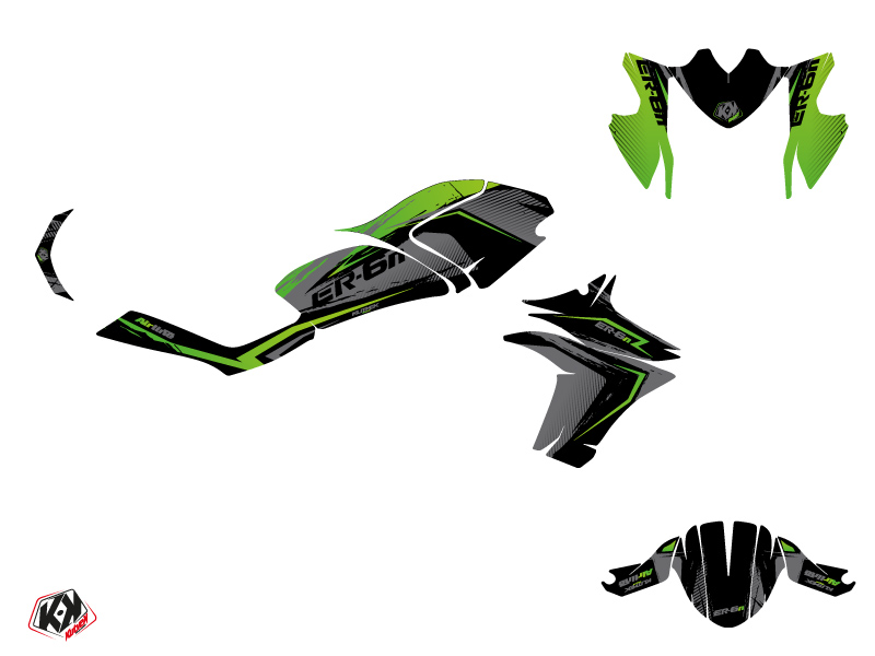 Offrez-vous dès maintenant pour votre Moto Kawasaki ER 6N un kit déco aux couleurs de la gamme AIRLINE Vert Noir.
