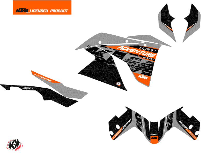Offrez-vous dès maintenant pour votre Moto KTM 1290 Super Adventure S un kit déco aux couleurs de la gamme GEAR Gris Orange.