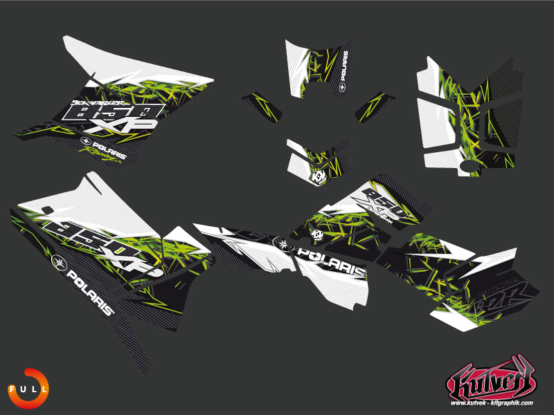 Offrez-vous dès maintenant pour votre Quad Polaris Scrambler 850-1000 XP un kit déco aux couleurs de la gamme ACTION Vert.