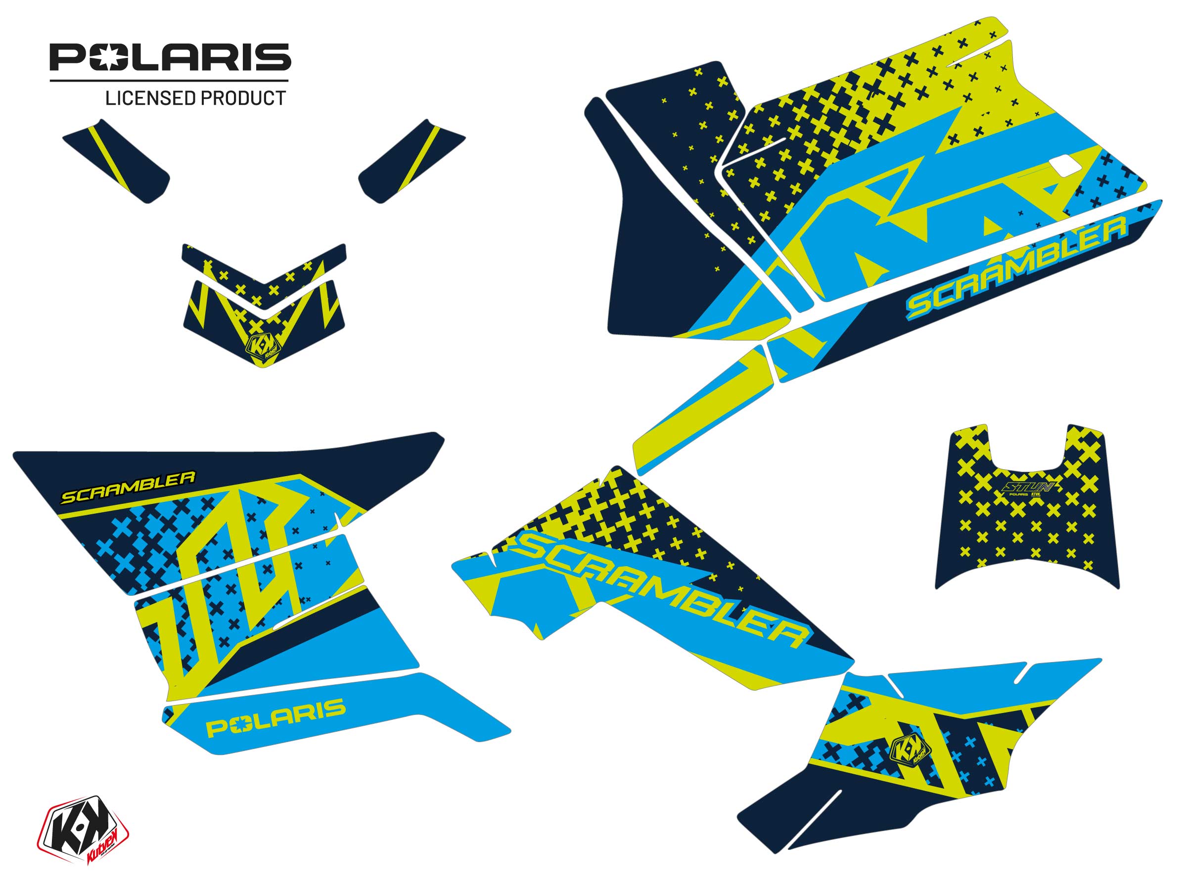 Offrez-vous dès maintenant pour votre Quad Polaris Scrambler 850-1000 XP un kit déco aux couleurs de la gamme Stun Bleu.