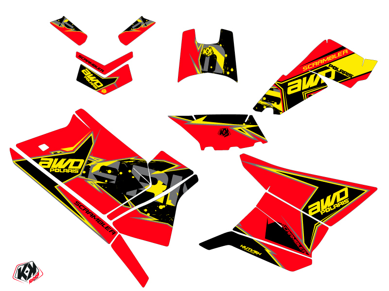 Offrez-vous dès maintenant pour votre Quad Polaris Scrambler 850-1000 XP un kit déco aux couleurs de la gamme VISOR Rouge Jaune.
