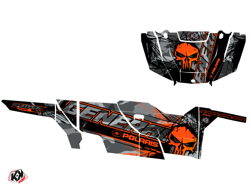 Offrez-vous dès maintenant pour votre SSV Polaris GENERAL 1000 4 portes un kit déco aux couleurs de la gamme EVIL Gris Orange.