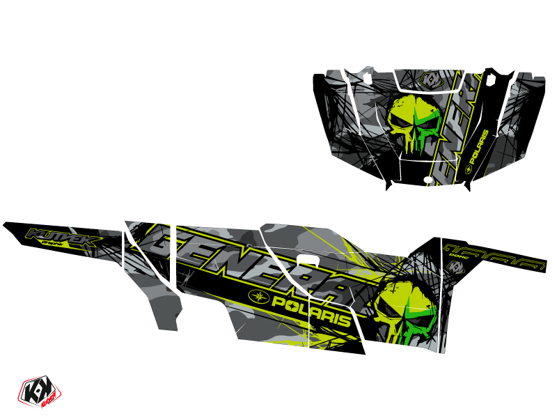 Offrez-vous dès maintenant pour votre SSV Polaris GENERAL 1000 4 portes un kit déco aux couleurs de la gamme EVIL Gris Vert.