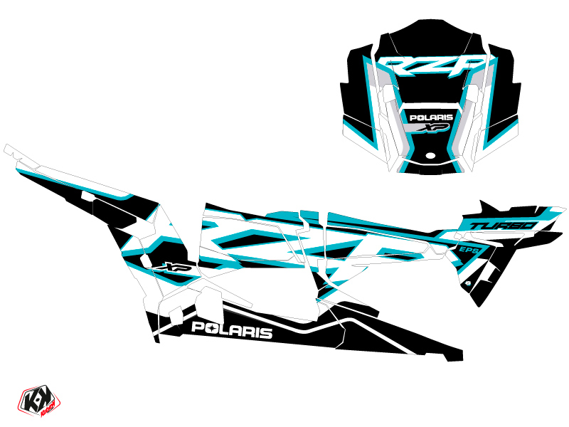 Offrez-vous dès maintenant pour votre SSV Polaris RZR 1000 Turbo 4 portes un kit déco aux couleurs de la gamme FASTER Blanc Bleu.