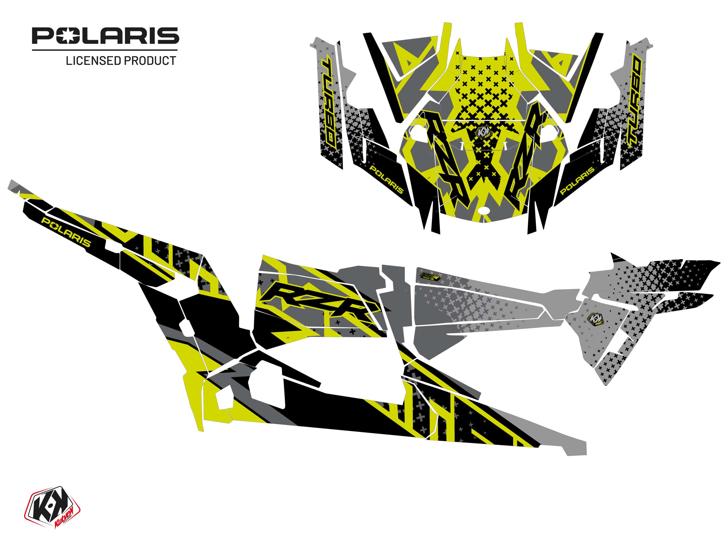 Offrez-vous dès maintenant pour votre SSV Polaris RZR XP Turbo 4 portes un kit déco aux couleurs de la gamme Stun Jaune.